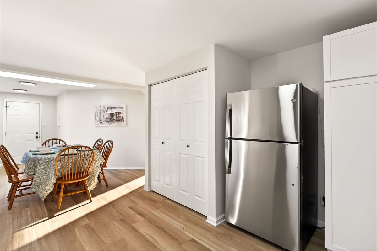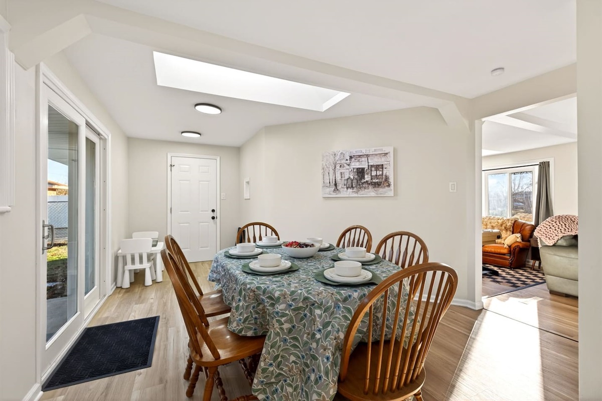 Dining table adjacent to fully equipped kitchen
